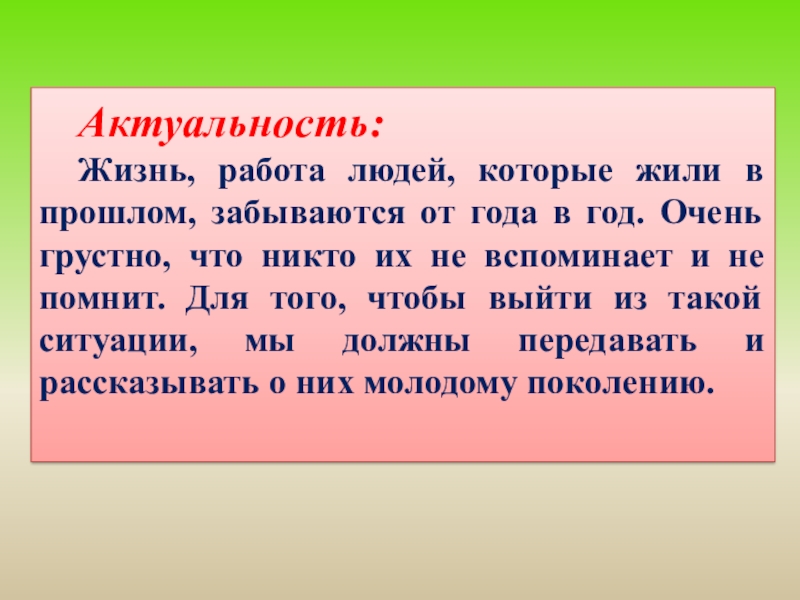 Жизнь, работа людей, которые жили в прошлом, забываются от года