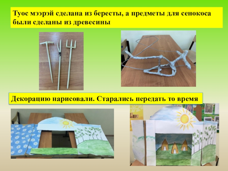 Слайд 24Туос мээрэй сделана из бересты, а предметы для сенокоса были сделаны