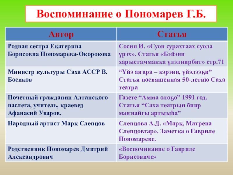 В настоящее время про артиста якутского национального театра Пономарева Г.Б.