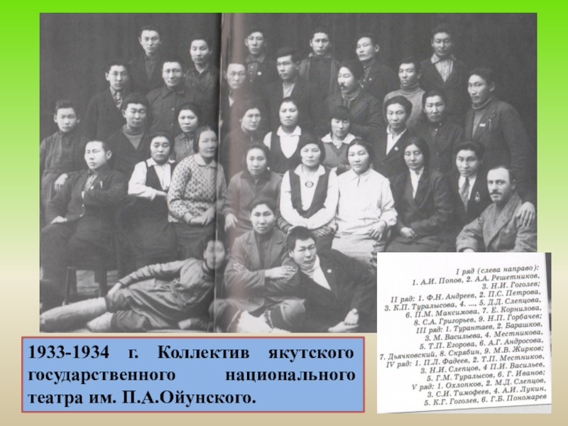 Слайд 131933-1934 г. Коллектив якутского государственного национального театра им. П.А.Ойунского.