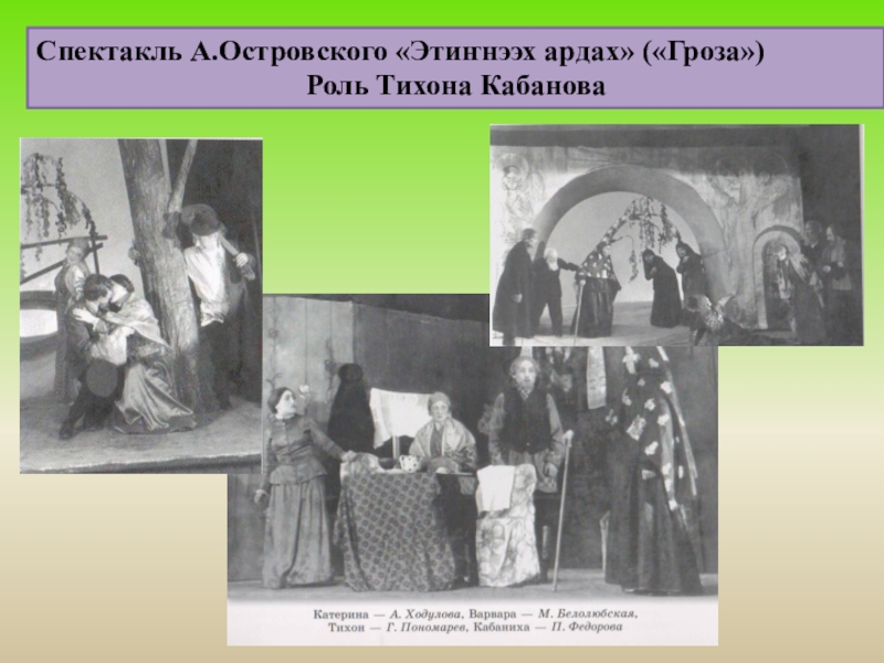 Слайд 20Спектакль А.Островского «Этиҥнээх ардах» («Гроза»)