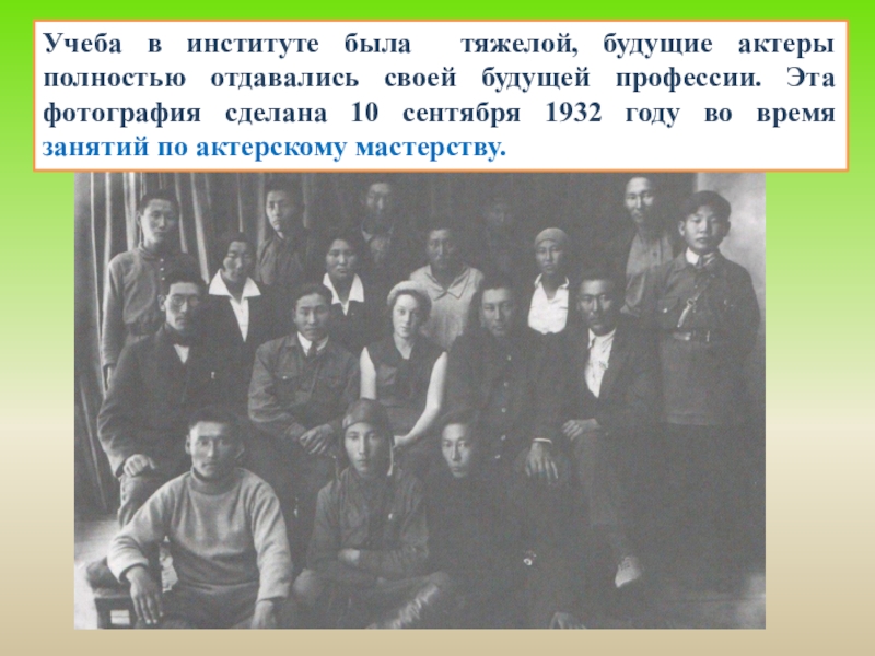 Слайд 71932 году талантливых молодых людей набрали на учебу в актерскую студию