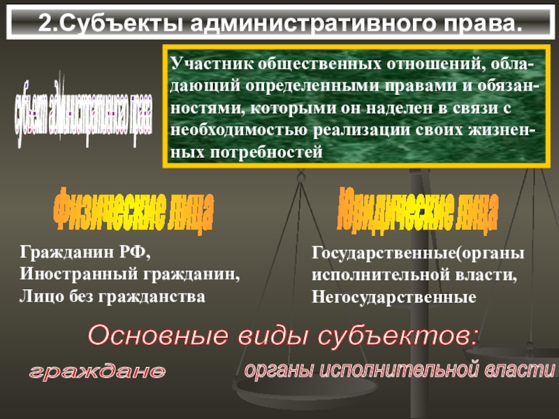 Основные виды субъектов: