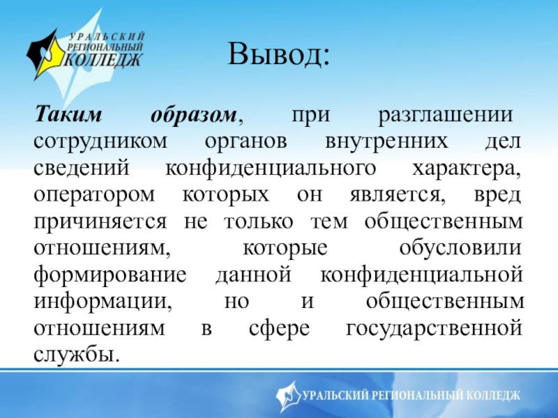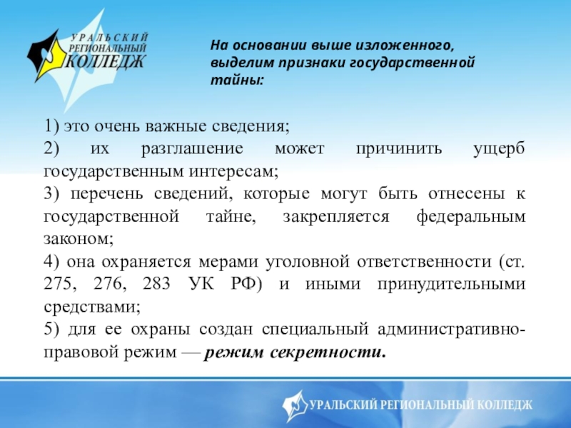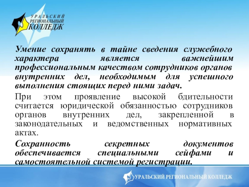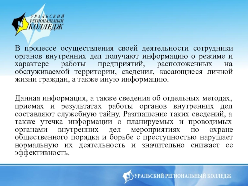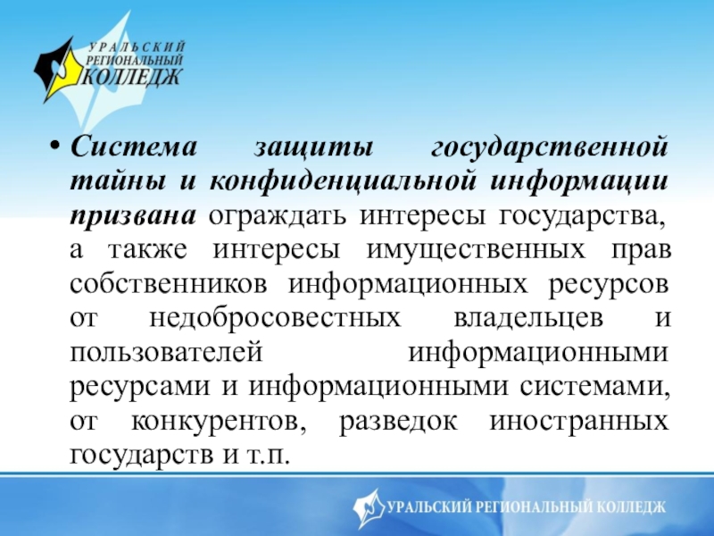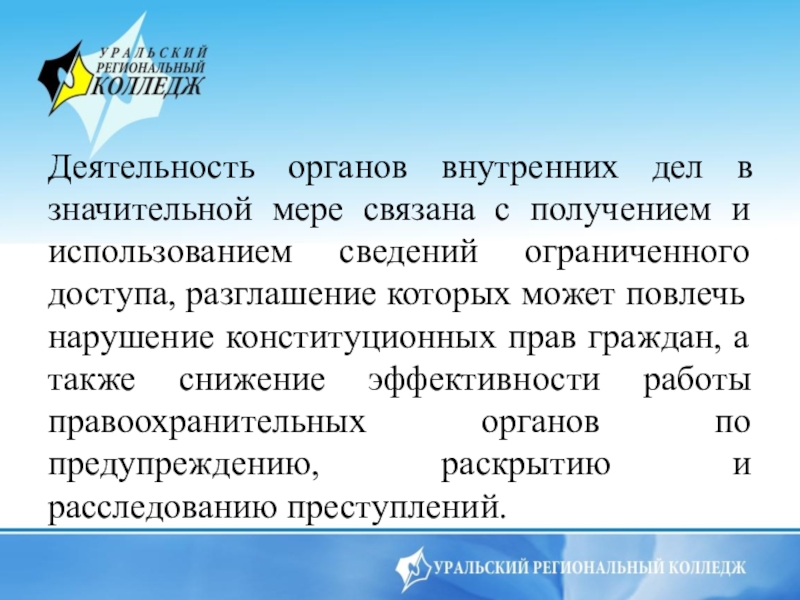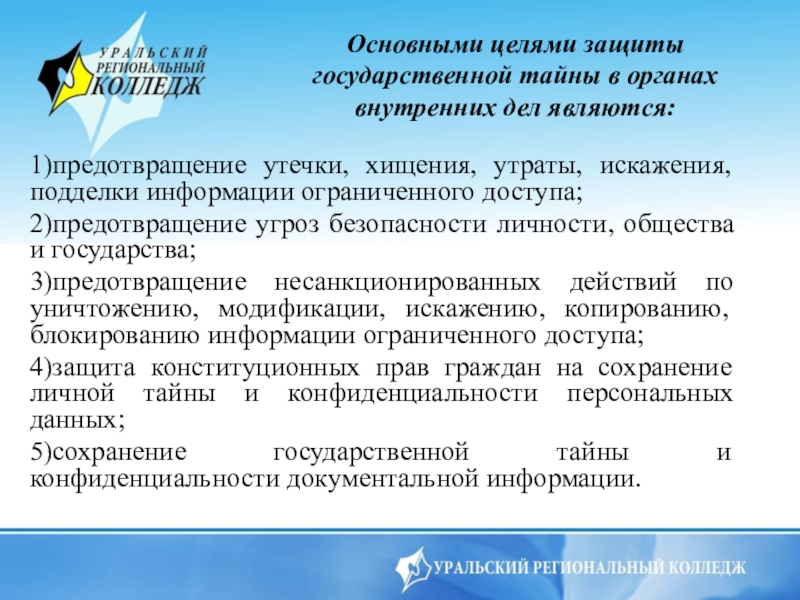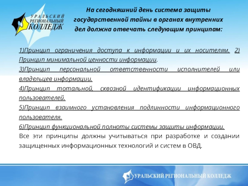 На сегодняшний день система защиты государственной тайны в органах внутренних дел должна отвечать следующим принципам:
