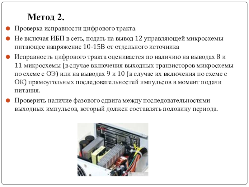 Слайд 4При ремонте ИБП необходимо использовать следующие методы: