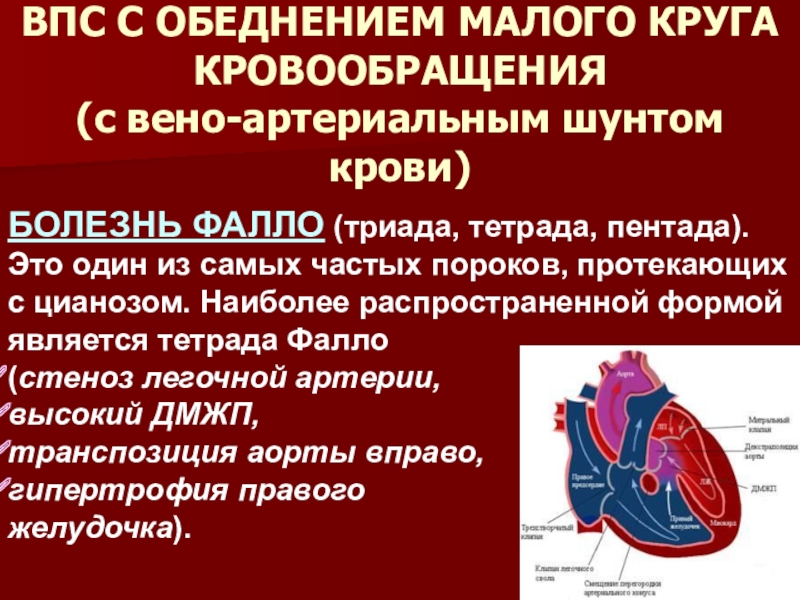 Слайд 29ВПС С ОБЕДНЕНИЕМ МАЛОГО КРУГА КРОВООБРАЩЕНИЯ