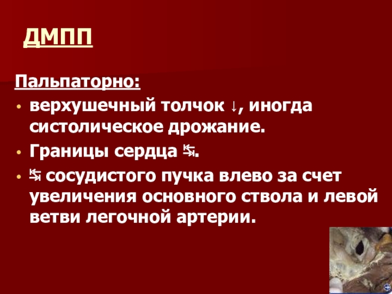 верхушечный толчок ↓, иногда систолическое дрожание.