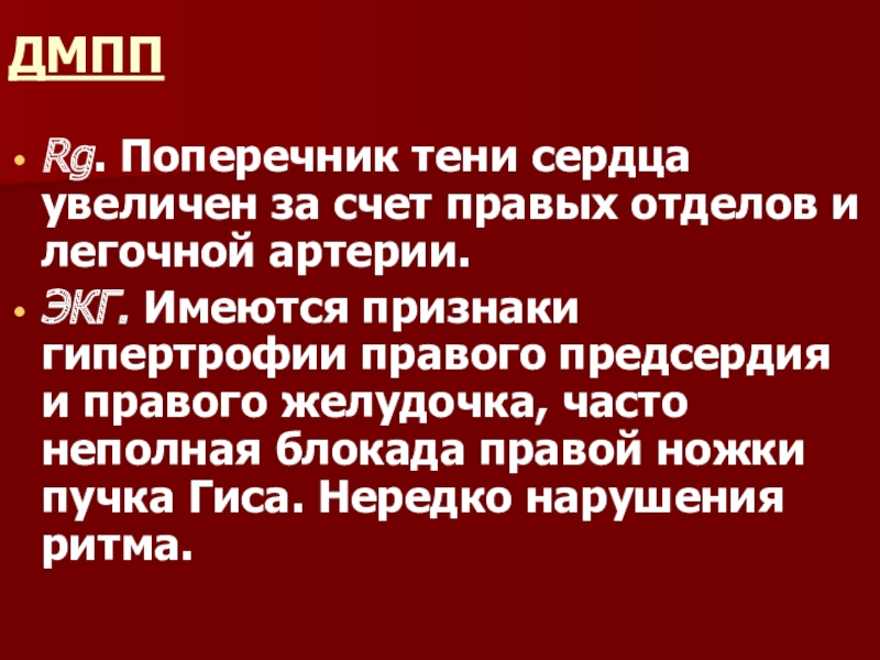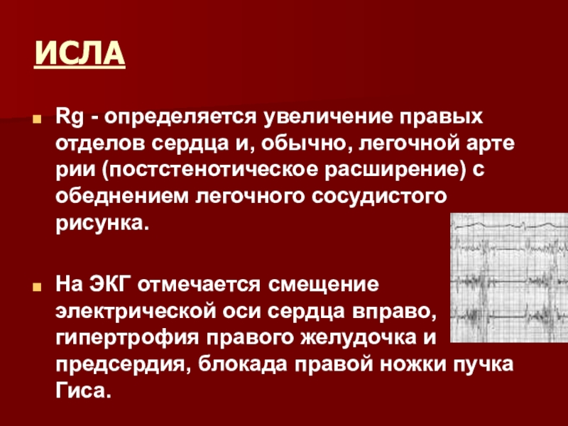 Rg - определяется увеличение правых отделов сердца и, обычно, легочной