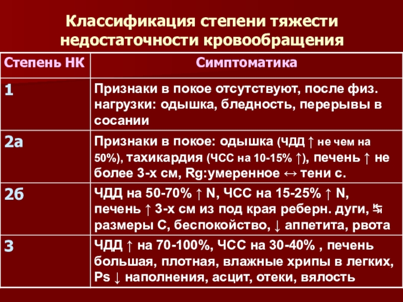 Слайд 9Классификация степени тяжести недостаточности кровообращения