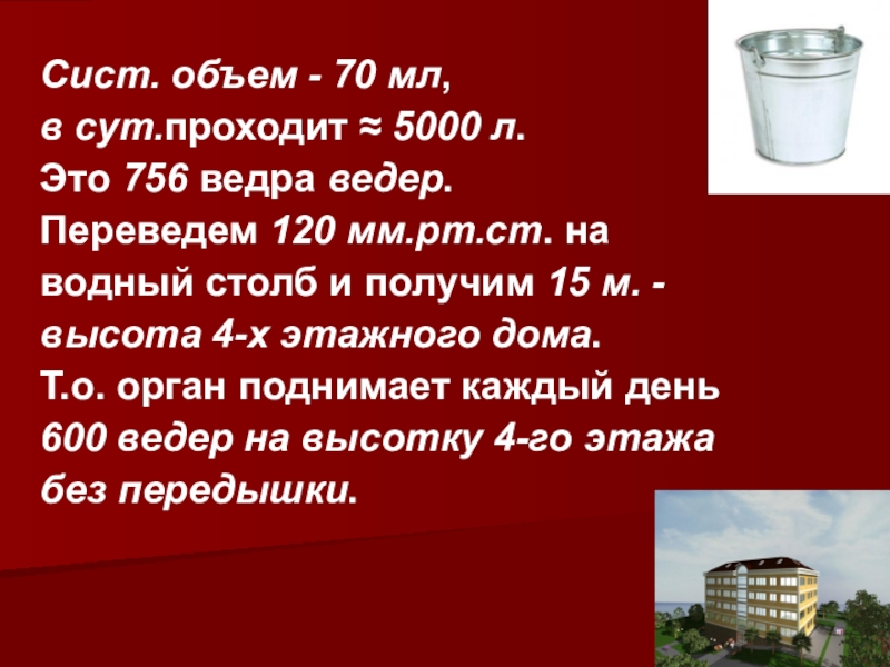 Т.о. орган поднимает каждый день 600 ведер на высотку 4-го этажа без передышки.