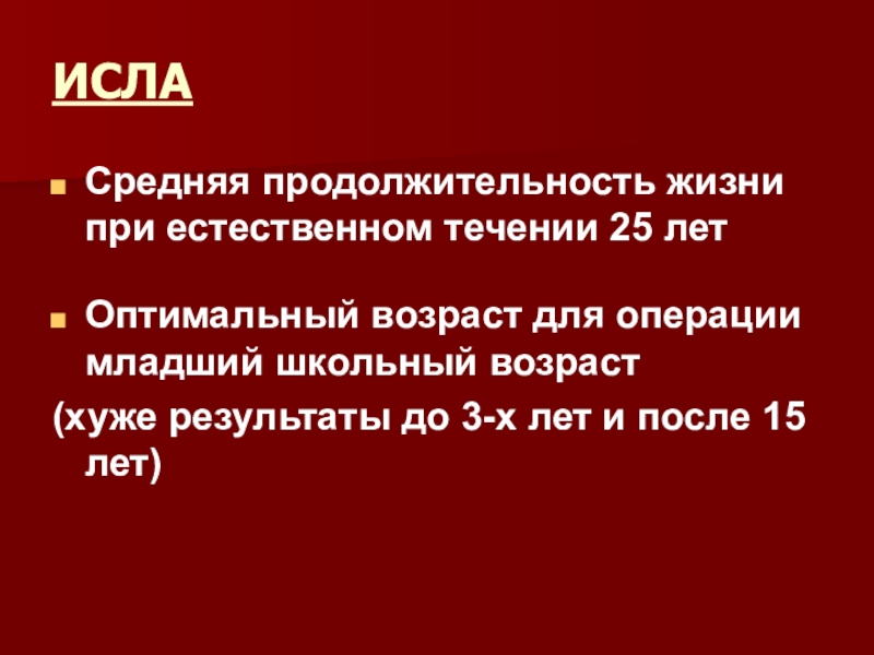 Средняя продолжительность жизни при естественном течении 30 – 35 лет.