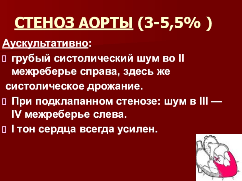 Слайд 36СТЕНОЗ АОРТЫ (3-5,5% )