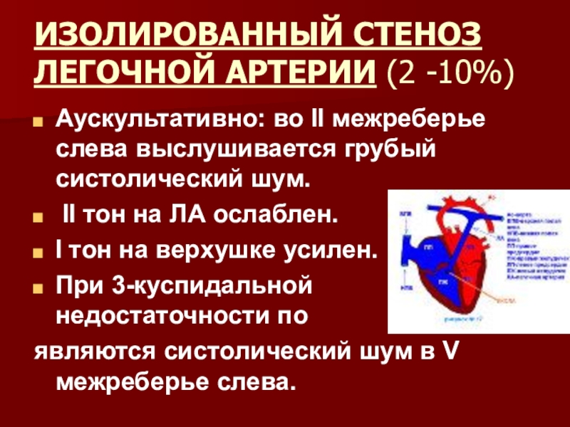 Слайд 33ИЗОЛИРОВАННЫЙ СТЕНОЗ ЛЕГОЧНОЙ АРТЕРИИ (2 -10%)
