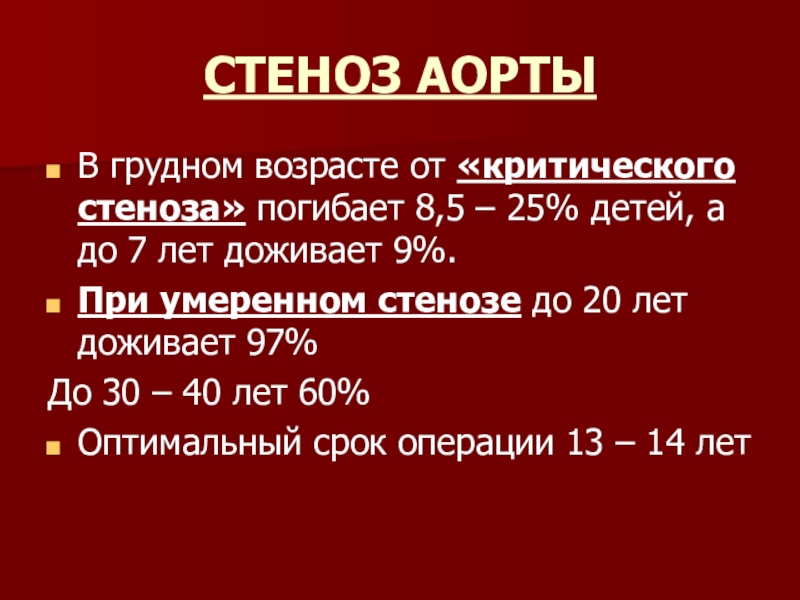 В грудном возрасте от «критического стеноза» погибает 8,5 – 25%