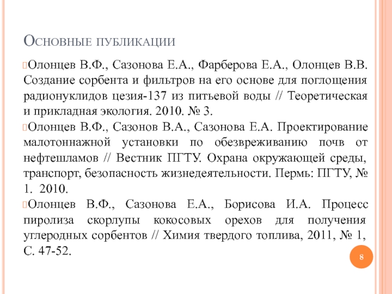 Слайд 8Основные публикации