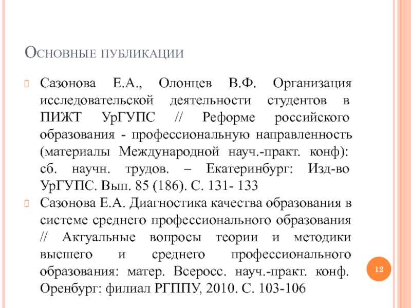 Слайд 12Основные публикации