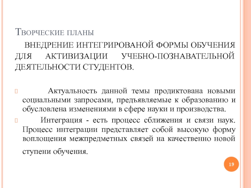 ВНЕДРЕНИЕ ИНТЕГРИРОВАНОЙ ФОРМЫ ОБУЧЕНИЯ ДЛЯ АКТИВИЗАЦИИ УЧЕБНО-ПОЗНАВАТЕЛЬНОЙ ДЕЯТЕЛЬНОСТИ СТУДЕНТОВ.