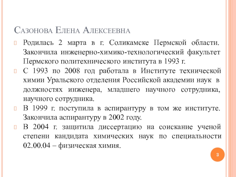 С мая 2008 года Сазонова Е.А. работает в Пермском