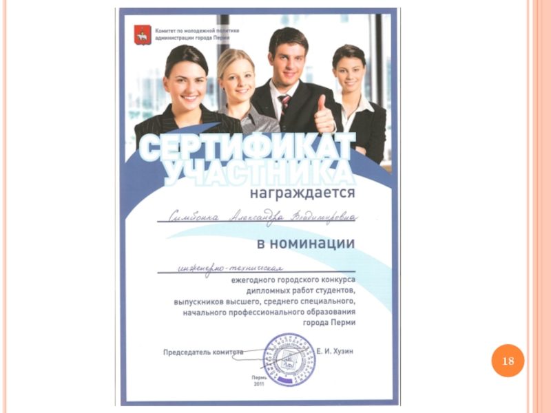 проектирования «Очистка промышленных сточных вод с высоким содержанием нефтепродуктов после промывки деталей подвижного состава», студент группы В-102 Кайсин А.С. Защита дипломного проекта на «отлично».