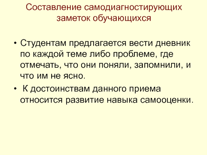 Слайд 50Составление самодиагностирующих заметок обучающихся