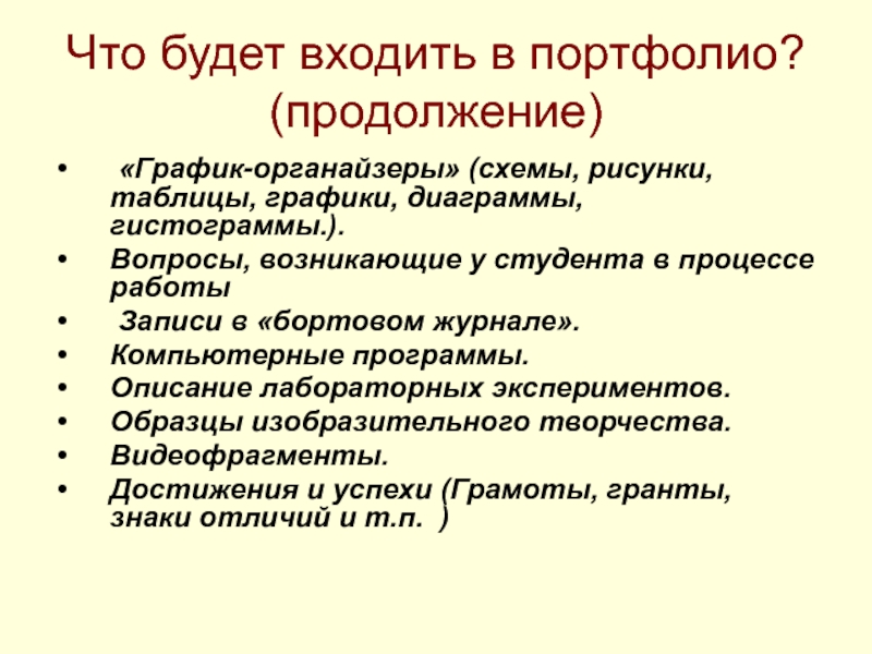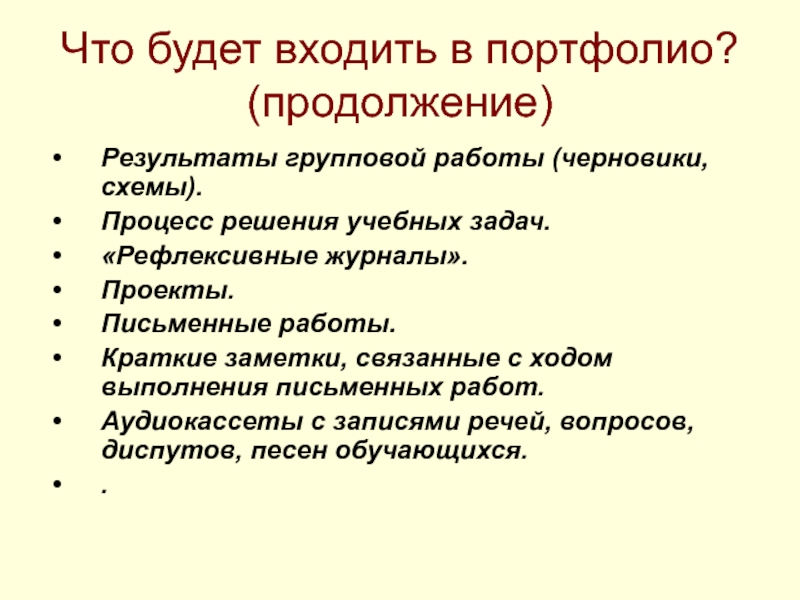 коллекция самостоятельных работ студентов за определенный период времени (обычно за семестр или учебный год), которая рассматривается: