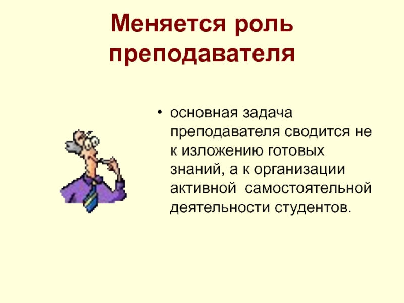 основная задача преподавателя сводится не к изложению готовых знаний,