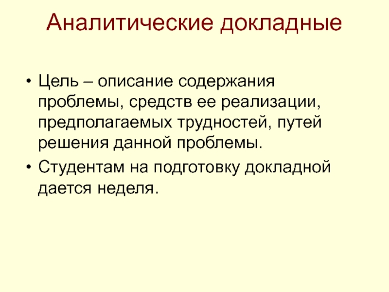Студентам предлагается по определенной проблеме раскрыть один - два