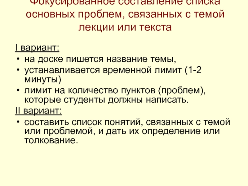 Слайд 41Фокусированное составление списка основных проблем, связанных с темой лекции или текста