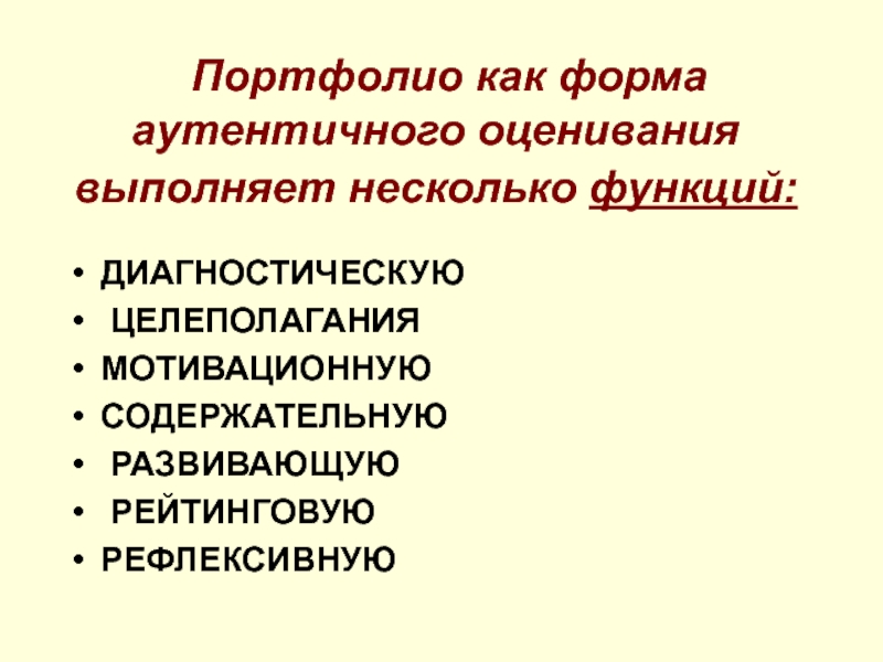 Слайд 17 Портфолио как форма аутентичного оценивания выполняет несколько функций: