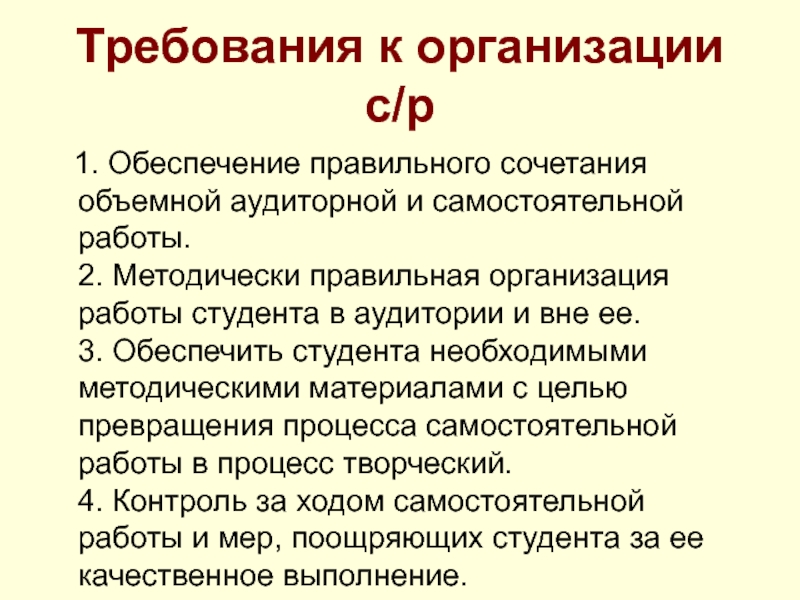 2. Методически правильная организация работы студента в аудитории и вне ее.