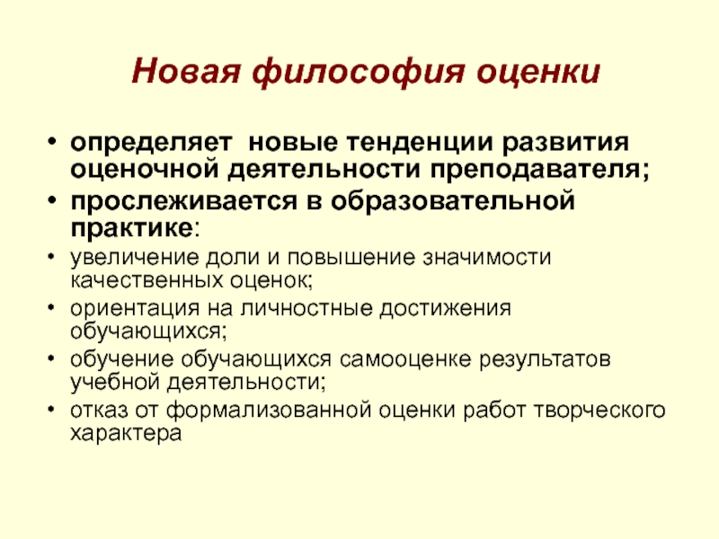 определяет новые тенденции развития оценочной деятельности преподавателя;