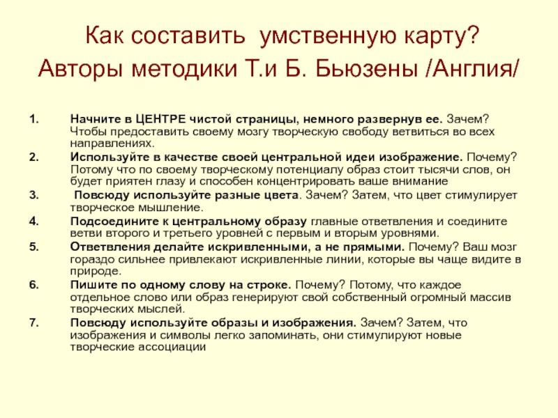Слайд 33 Как составить умственную карту? Авторы методики Т.и Б. Бьюзены /Англия/