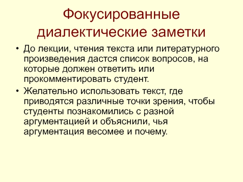 Желательно использовать текст, где приводятся различные точки зрения, чтобы студенты познакомились с разной аргументацией и объяснили, чья аргументация весомее и почему.
