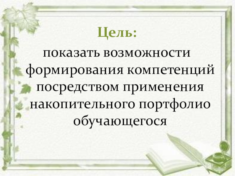 Цель: показать возможности формирования компетенций посредством применения накопительного портфолио обучающегося