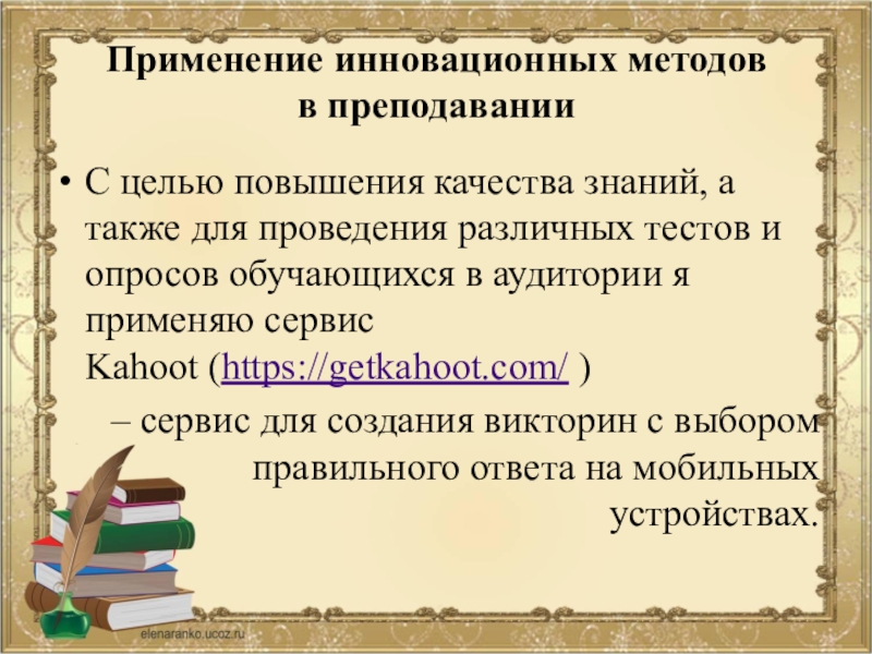 Это сайт презентаций, где можно хранить и обмениваться своими презентациями, докладами, проектами, шаблонами в формате PowerPoint с другими пользователями. Мы помогаем школьникам, студентам, учителям, преподавателям хранить и обмениваться учебными материалами.