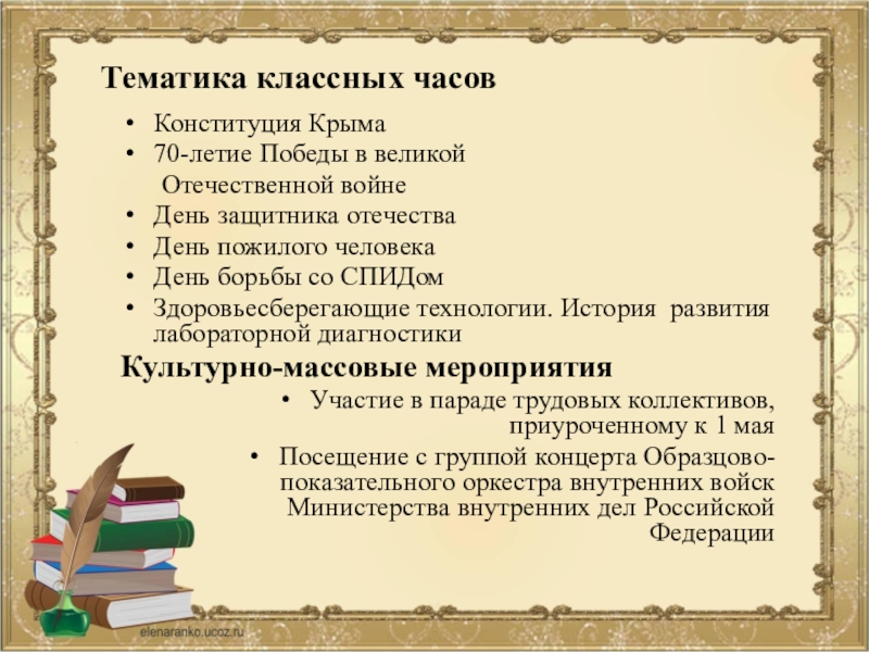 Тематика классных часов