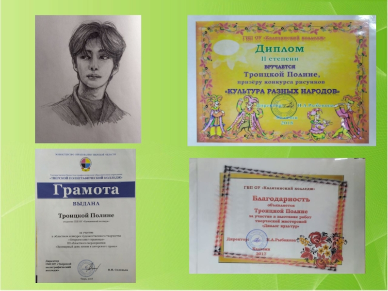 Троицой Полины Валерьевны студентки ГБП ОУ «Калязинский Колледж»Портфолио