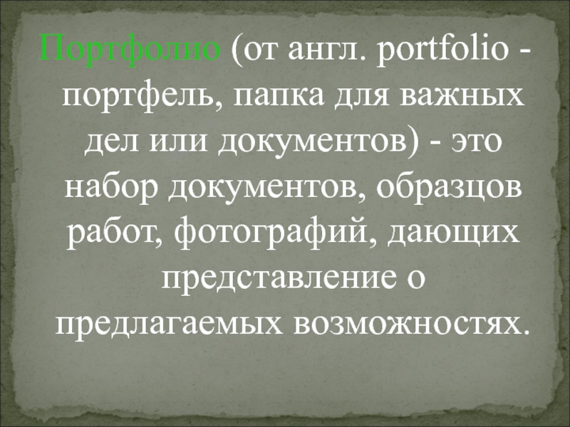Слайд 2Портфолио (от англ. portfolio - портфель, папка для важных дел или