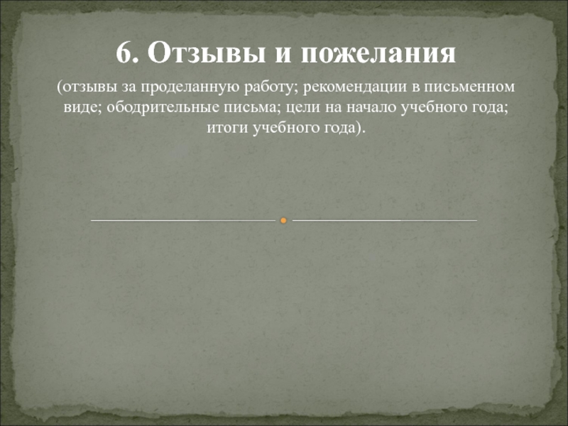 6. Отзывы и пожелания(отзывы за проделанную работу; рекомендации в письменном виде; ободрительные письма; цели на начало учебного