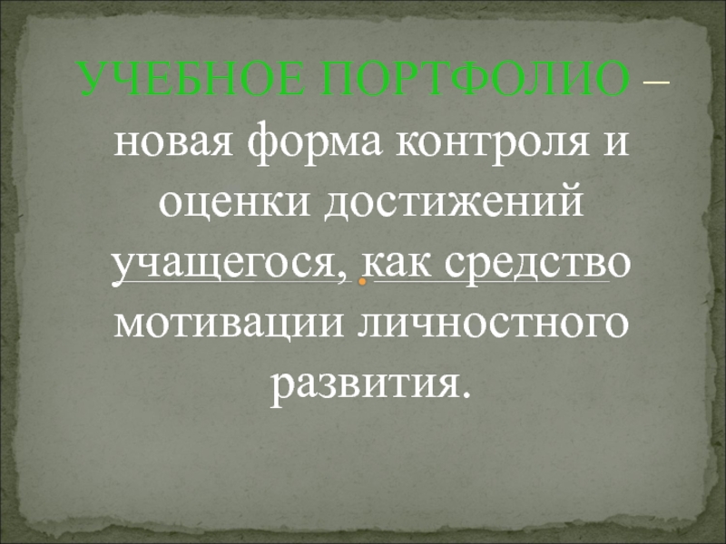 УЧЕБНОЕ ПОРТФОЛИО – новая форма контроля и оценки достижений учащегося, как средство мотивации личностного развития.