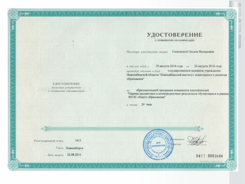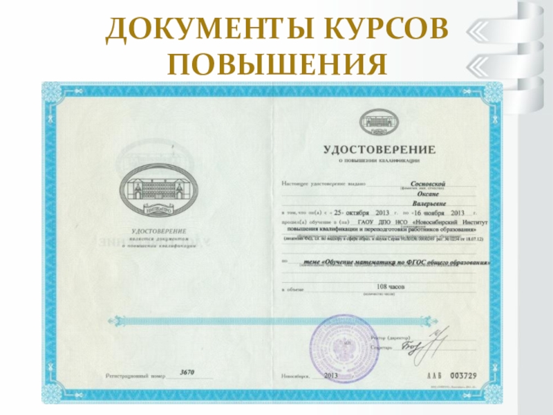Слайд 10Документы курсов повышения квалификации
