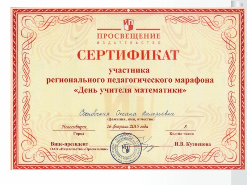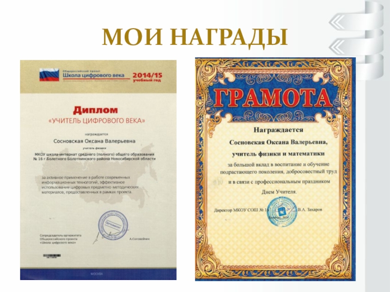 Презентация, доклад на тему Портфолио учителя физики и математики Сосновской О.В.