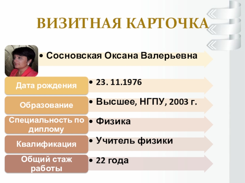 Слайд 6Визитная карточка