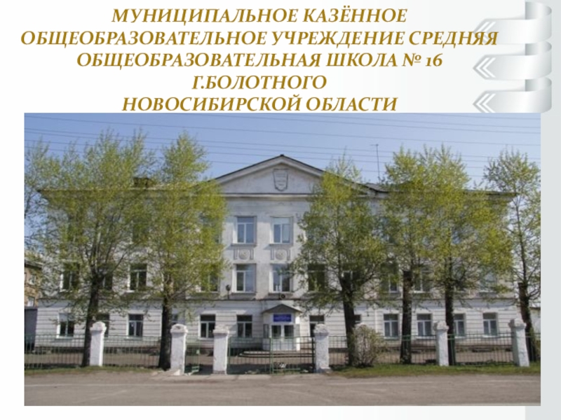 Слайд 2Муниципальное казённое общеобразовательное учреждение средняя общеобразовательная школа № 16 г.Болотного Новосибирской