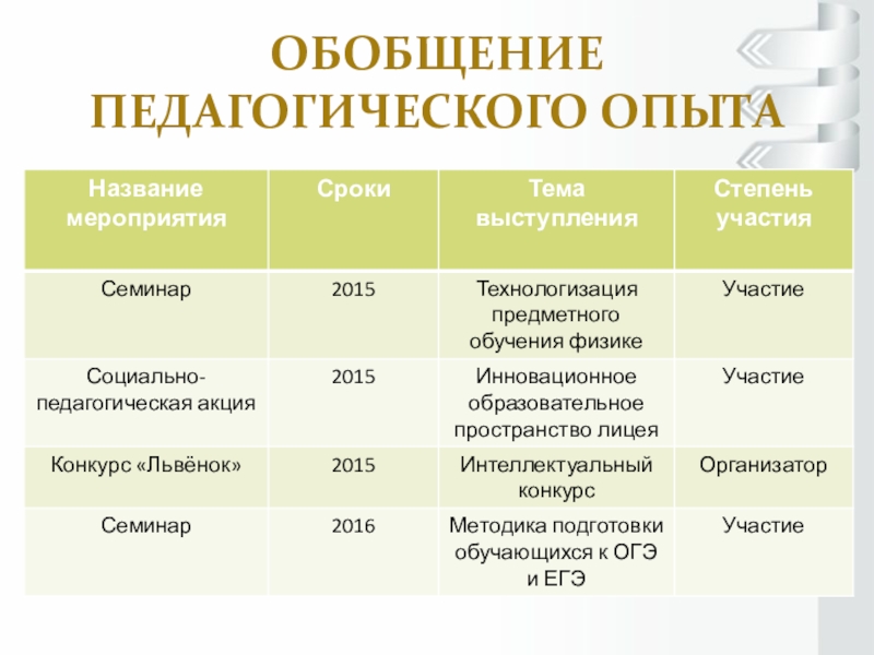Слайд 15Обобщение педагогического опыта