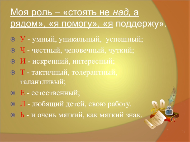 Моя роль – «стоять не над, а рядом», «я помогу», «я поддержу».