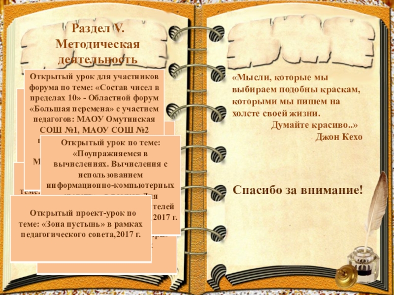 "Люди перестают мыслить, когда перестают читать, а учитель перестаёт быть учителем, если не постигает ничего нового» (Д.Дидро)
