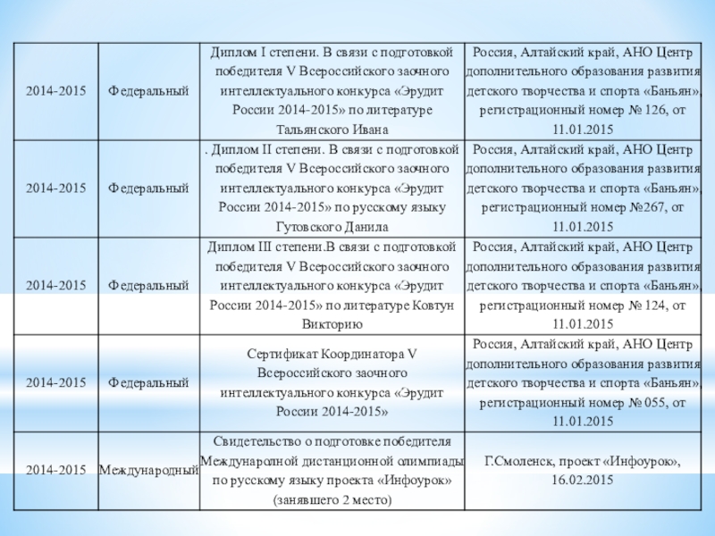 Это сайт презентаций, где можно хранить и обмениваться своими презентациями, докладами, проектами, шаблонами в формате PowerPoint с другими пользователями. Мы помогаем школьникам, студентам, учителям, преподавателям хранить и обмениваться учебными материалами.
