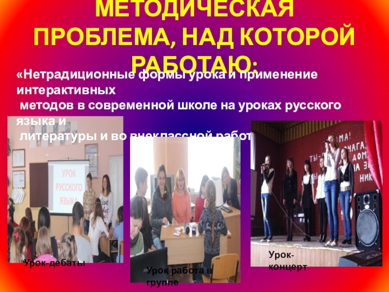 В нетрадиционном обучении деятельность учителя меняется коренным образом. Теперь главная задача учителя не «донести», «преподнести», «объяснить», «показать» учащимся, а организовать совместный поиск решения возникшей перед ними задачи. Учитель начинает выступать как режиссер мини-спектакля, который рождается непосредственно в классе.