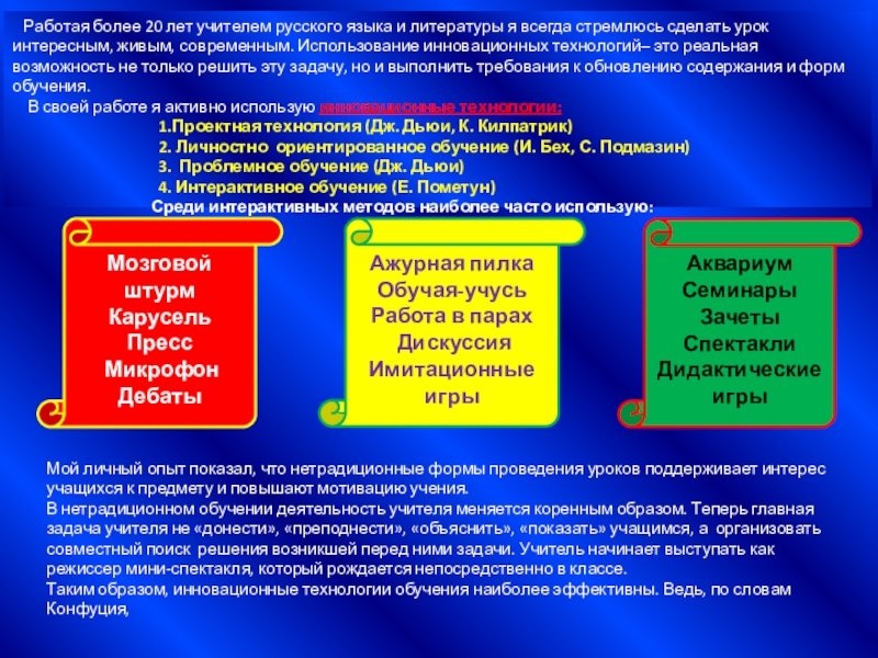 Таким образом, инновационные технологии обучения наиболее эффективны. Ведь, по словам Конфуция,
